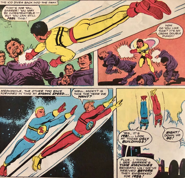 Miracleman has an idea. He and Young Miracleman will travel through space at Atomic Speed, in order to fly through time... arriving in 1981 to stop the Gestapo from ever coming back to the past. Kid Miracleman will remain and hold off the baddies as long as he can.