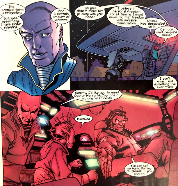 Our entire team here... actually, check that - our entire team x-cept Stacy (oddly enough), comes across as real a-holes here. Just really snippy, sarcastic, and dismissive of one another. Not a likeable bunch... which, I'll use my powers of projection to suggest that Uncanny was attempting to evoke the tone of the (at the time) wildly popular Ultimate X-Men? It's been ages since I read that, but I seem to remember none of those characters being all that pleasant to be around either.